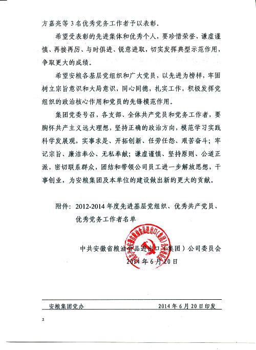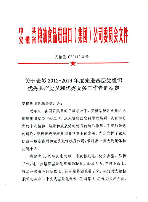 關(guān)于表彰2012-2014年度先進(jìn)基層黨組織 優(yōu)秀共產(chǎn)黨員 優(yōu)秀黨務(wù)工作者的決定