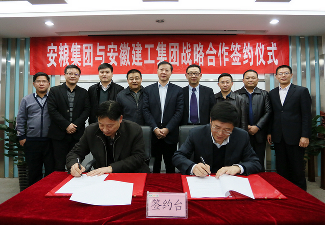 2015年12月3日,安糧集團(tuán)與安徽建工集團(tuán)戰(zhàn)略合作協(xié)議簽約儀式在盛安廣場(chǎng)22樓會(huì)議室舉行,安徽建工集團(tuán)副總經(jīng)理許克順、安糧集團(tuán)黨委副書記、安糧控股常務(wù)副總裁方宗友、安糧控股副總裁曹訓(xùn)立、安糧集團(tuán)總經(jīng)理助理周洪出席儀式。
