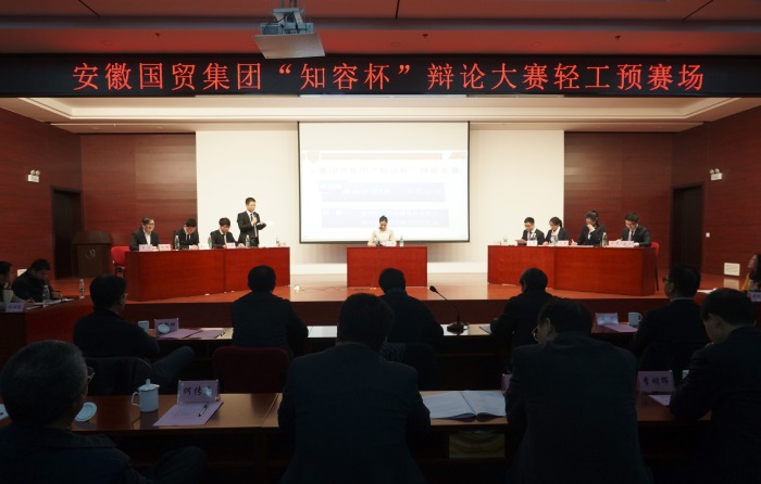 12月23日下午,由國貿(mào)集團(tuán)團(tuán)委主辦的“知容杯”辯論大賽在輕工賽區(qū)火熱開賽。本次大賽由安糧、技術(shù)、輕工、服裝、安徽進(jìn)出口、華安、工藝7家單位組隊(duì)參加比賽,其中我司派出2支代表隊(duì)參賽,安糧一隊(duì)由新能源劉毅、安糧國際彭震、安糧期貨高軍偉、安糧實(shí)業(yè)馮婷梅組成,安糧二隊(duì)隊(duì)員為合肥建工許亞鋒、龐濤、許諾、朱潤,安糧集團(tuán)總經(jīng)理助理周洪擔(dān)任比賽評委。