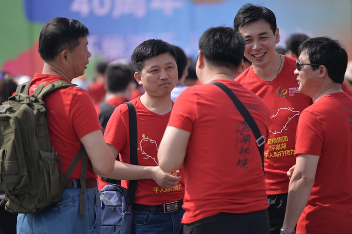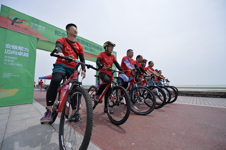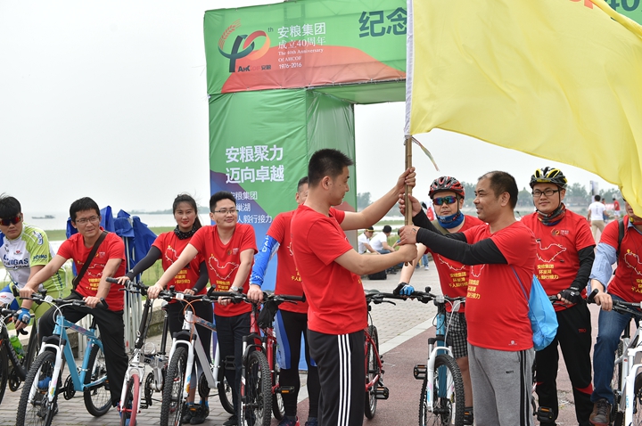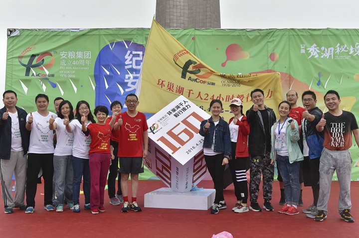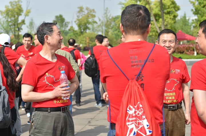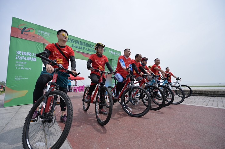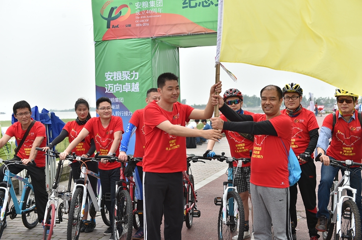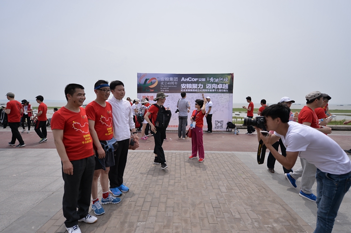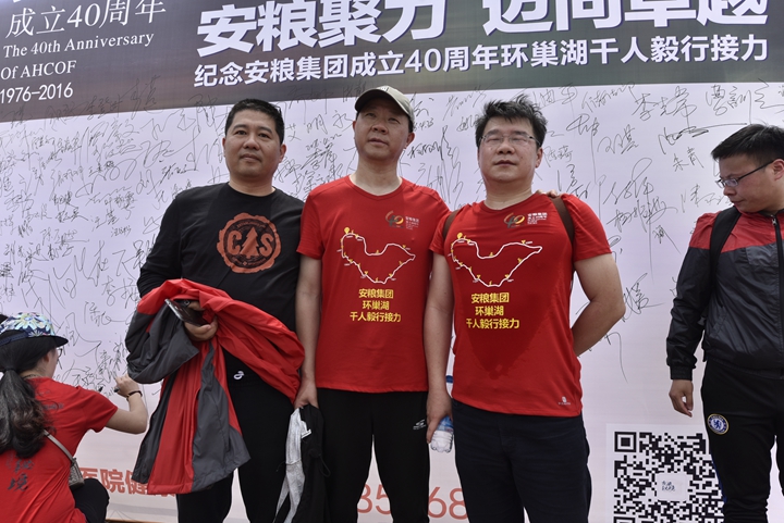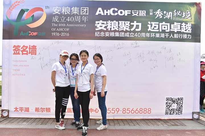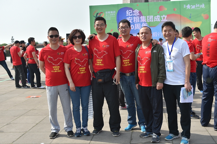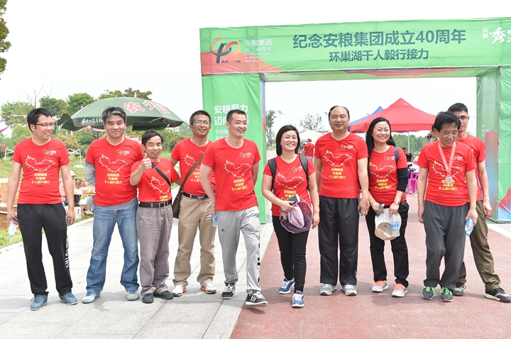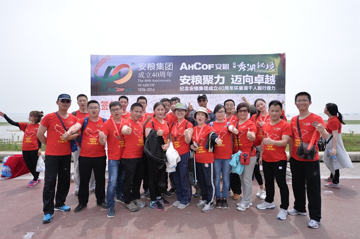 為慶祝安糧集團(tuán)成立40周年,2016422-23日,為期兩天、歷程160公里的安糧集團(tuán)環(huán)巢湖千人毅行接力活動(dòng)在美麗的巢湖之濱熱情上演。本次活動(dòng)以“安糧聚力,邁向卓越”為主題,共有近千人參與,不僅有公司系統(tǒng)在職員工和退休老領(lǐng)導(dǎo)、老同志,國(guó)貿(mào)集團(tuán)范陽(yáng)董事長(zhǎng)還帶領(lǐng)國(guó)貿(mào)集團(tuán)的20多名同仁前來助陣。
