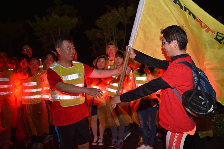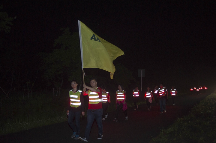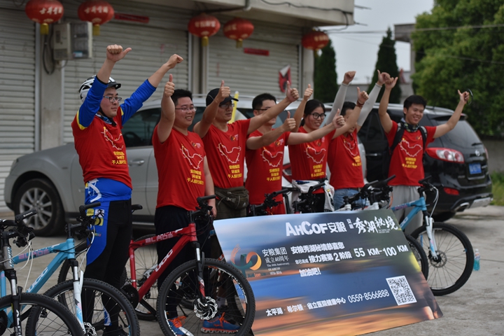 頂烈日出發(fā),迎風(fēng)雨歸來, 不經(jīng)歷風(fēng)雨,怎能見彩虹!本次活動(dòng)旨在通過比拼耐力、團(tuán)隊(duì)協(xié)作的戶外青春毅行方式,感懷安糧集團(tuán)四十年艱苦發(fā)展歷程,詮釋和回顧安糧集團(tuán)四十年坎坷發(fā)展之路!毅行隊(duì)伍匯聚成一股紅色浪潮,浩浩蕩蕩,與春潮共涌,隨鷗鷺爭(zhēng)翔。或漫步,或疾走,徒步者三五相攜,騎行者如離弦之箭。追憶往昔,暢想未來,個(gè)個(gè)喜笑顏開,人人意氣風(fēng)發(fā)。披朝露,追夕照,抵烈日,沐風(fēng)雨。攜手前行有春光作伴,夜幕沉沉我們從不孤獨(dú),火熱的太陽(yáng)燃燒出安糧人的激情,突來的風(fēng)雨洗禮出我們的團(tuán)結(jié)和堅(jiān)毅。毅行隊(duì)伍一路向前,徒步騎行從容接力,通過24小時(shí)的一路堅(jiān)持,穿過環(huán)巢一市三縣,不斷向目標(biāo)邁進(jìn),向勝利進(jìn)發(fā)!