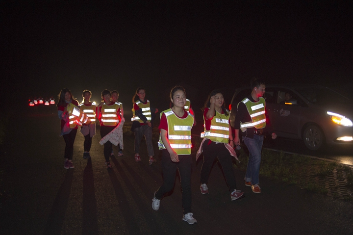 活動(dòng)分徒步、騎行兩個(gè)項(xiàng)目,以濱湖新區(qū)渡江戰(zhàn)役紀(jì)念館為起訖點(diǎn),自西向東、環(huán)巢而行,沿途先后歷經(jīng)肥東縣、巢湖市、廬江縣、肥西縣、濱湖新區(qū)。第一階段徒步毅行由解放碑出發(fā),行程10公里,參與人數(shù)700余人,12點(diǎn)前后陸續(xù)抵達(dá)半島碼頭接力點(diǎn)。第二階段全程150公里,由兩支自行車騎行大隊(duì)與四支徒步大隊(duì)組成。在第一階段隊(duì)伍全部抵達(dá)后,第二階段隊(duì)伍中午12:30騎行隊(duì)伍出發(fā),按照45km/棒開始接力。22日晚7時(shí)許,騎行隊(duì)伍抵達(dá)預(yù)定地點(diǎn)。19:30,徒步隊(duì)伍接力開始出發(fā),挑戰(zhàn)夜行,每15公里交接一棒。22日夜的巢湖岸邊,夜黑如墨,風(fēng)大雨急,氣溫驟降,四組徒步隊(duì)員們頂風(fēng)冒雨,不畏艱難、相攜相伴,堅(jiān)毅前行,如時(shí)完成!