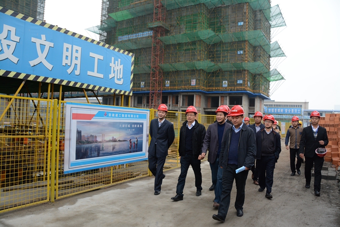 2016年11月17日下午,國貿(mào)集團(tuán)董事、副總經(jīng)理程保銀一行到安糧中心項(xiàng)目檢查安全生產(chǎn)情況,并對安全生產(chǎn)提出了指導(dǎo)意見。安糧集團(tuán)黨委副書記、安糧置地董事長孫毅等陪同檢查。