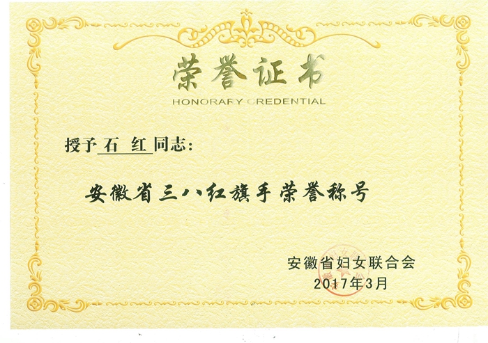 “安徽省三八紅旗手”榮譽(yù)證書