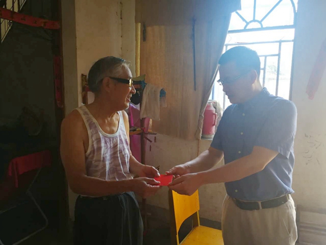 方宗友、孫毅在當(dāng)?shù)卮甯刹康膸ьI(lǐng)下進村入戶,走訪慰問對口幫扶貧困戶,為他們送上慰問金,與他們進行面對面的交談,詢問他們的健康狀況、經(jīng)濟來源和生活開支等情況,了解他們目前存在的困難以及對生產(chǎn)生活方面的訴求,鼓勵他們樹立信心,叮囑他們保重身體,表示遇到困難隨時聯(lián)系,國貿(mào)集團、安糧集團將盡全力給予幫助。