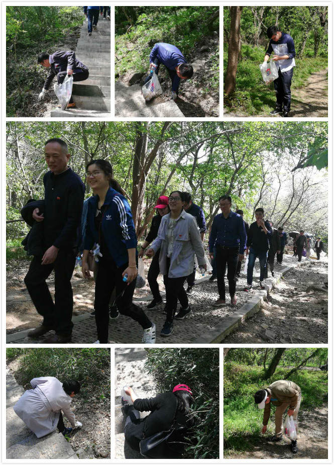 在烈士紀(jì)念碑前,全體黨員佩戴黨徽面對黨旗莊嚴(yán)宣誓,重溫入黨誓詞并向革命先烈鞠躬致敬。隨后通過參觀安徽革命烈士事跡陳列館了解歷史真相,追思革命先烈豐功偉績,學(xué)習(xí)先烈志士先進(jìn)事跡,在講解員的生動解說中,大家深刻體會了革命先烈為人民幸福前仆后繼的獻(xiàn)身精神,學(xué)習(xí)了革命先烈對黨忠誠的崇高風(fēng)范。參觀結(jié)束后,黨員們從陵園出發(fā)登頂大蜀山,沿途拾撿垃圾,還烈士一片長眠凈土。在我們的影響下,登山群眾紛紛加入到綠色行動中來,撿起小道上丟棄的空水瓶、零食包裝。。。更有親子行的父母教育孩子要以我們?yōu)榘駱?,從小養(yǎng)成不隨地亂扔垃圾的好習(xí)慣,為美化生活環(huán)境做出自己的小小努力。