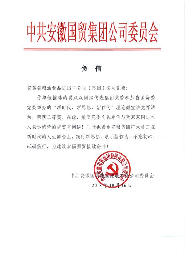 為深入學(xué)習(xí)宣傳習(xí)近平新時(shí)代中國(guó)特色社會(huì)主義思想,省國(guó)資委黨委近日組織開(kāi)展了“新時(shí)代、新思想、新作為”理論微宣講競(jìng)賽活動(dòng),經(jīng)過(guò)國(guó)貿(mào)集團(tuán)系統(tǒng)內(nèi)層層選拔、好中擇優(yōu),安糧集團(tuán)推薦的選手--來(lái)自安糧置地的賈雙雙獲得了代表國(guó)貿(mào)集團(tuán)參加本次微宣講競(jìng)賽的資格,并最終在比賽中榮獲三等獎(jiǎng)。