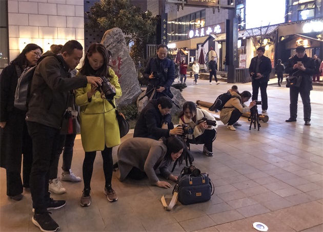 夜景拍攝非常講究技巧,會(huì)員們或蹲或趴的攝影姿勢(shì)也成了本次攝影課的一道風(fēng)景。拍攝過程中,大家不斷探討各自的作品,請(qǐng)教老師拍攝要點(diǎn),力求拍攝一張好照片。晚間的春風(fēng)有些料峭,但會(huì)員們熱情洋溢,現(xiàn)場(chǎng)笑語不斷。