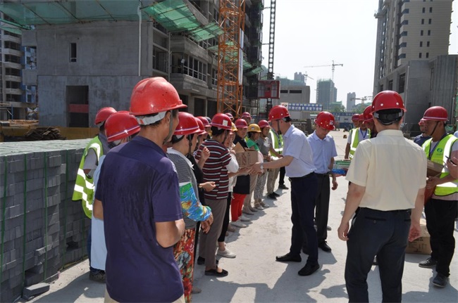 時(shí)至大暑,日盛三伏。23日上午9點(diǎn),曹訓(xùn)立書(shū)記一行來(lái)到由總承包分公司承建的濱湖碧桂公館項(xiàng)目部,慰問(wèn)鏖戰(zhàn)酷夏的一線(xiàn)職工,為他們送去防暑降溫慰問(wèn)品。曹訓(xùn)立書(shū)記與總承包分公司及項(xiàng)目主要負(fù)責(zé)人進(jìn)行了細(xì)致交流,叮囑公司和項(xiàng)目部要做好防暑降溫工作,合理安排施工時(shí)段,盡量避開(kāi)高溫天氣,注意勞逸結(jié)合,給一線(xiàn)員工創(chuàng)造良好的工作環(huán)境,確保員工身體健康和施工安全,保障各項(xiàng)目工作有條不紊地開(kāi)展。