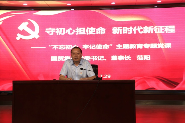 國(guó)貿(mào)集團(tuán)黨委書記、董事長(zhǎng)范陽到合肥建工講授“不忘初心 牢記使命”主題教育專題黨課