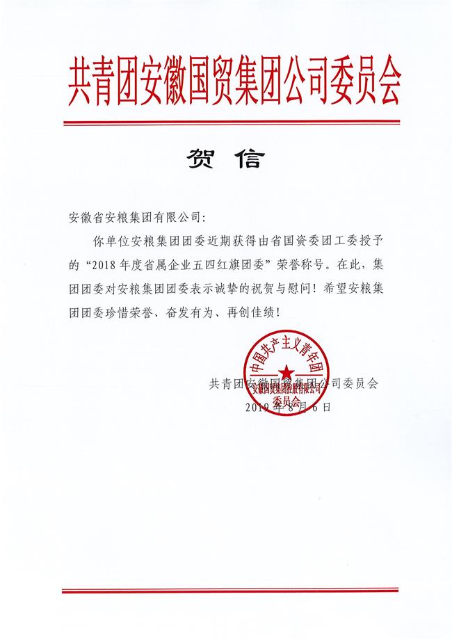 安糧集團(tuán)團(tuán)委獲省國(guó)資委“2018年度省屬企業(yè)五四紅旗團(tuán)委”榮譽(yù)稱號(hào)