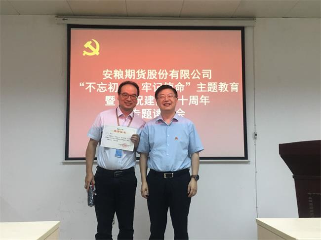主講環(huán)節(jié)結(jié)束,黨支部書記汪勇做了總結(jié)發(fā)言,首先對此次讀書會各位主講人充分認(rèn)真的準(zhǔn)備表示贊揚(yáng),我們在日常工作、學(xué)習(xí)和生活中就是要有這種認(rèn)真的態(tài)度,不斷積累不斷提高;讀書會為我們提供了學(xué)習(xí)交流和知識展現(xiàn)的場所,全體員工要提高學(xué)習(xí)能力和勁頭,多些領(lǐng)悟,把每件事做精做專,希望大家積極加入每一次的活動(dòng)。同時(shí)汪書記強(qiáng)調(diào)今年是中華人民共和國成立七十周年,“不忘初心、牢記使命”主題教育正當(dāng)其時(shí),各位黨員要認(rèn)真領(lǐng)會主題教育相關(guān)精神,用習(xí)近平新時(shí)代中國特色社會主義思想和黨的十九大精神武裝頭腦、指導(dǎo)實(shí)踐、推動(dòng)工作,更加自覺的為新時(shí)代黨的歷史使命而奮斗。全體安糧期貨人要腳踏實(shí)地,盡職盡責(zé)、敬業(yè)奉獻(xiàn),砥礪前行,努力做新時(shí)代的奮斗者。
