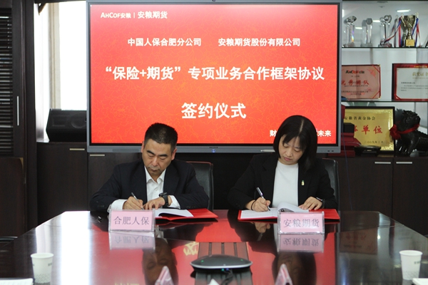 安糧期貨與人保財險合肥分公司簽訂“保險+期貨”專項業(yè)務(wù)合作框架協(xié)議