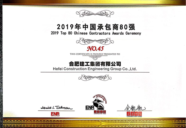 11月8日,由中國《建筑時報》和美國《工程新聞記錄》(ENR)兩家行業(yè)權威媒體主辦的2019ENR/建筑時報“中國承包商80強和工程設計企業(yè)60強”頒獎典禮在浙江杭州舉行。合肥建工再次入圍“中國承包商80強”,位居第45位。