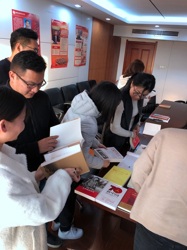 11月28日,安糧實業(yè)黨支部在17樓黨員活動室正式啟動“圖書漂流 閱讀分享”活動。活動室現(xiàn)有書籍和補充讀本通過漂流形式在黨員間輪轉(zhuǎn),黨員閱讀后互相交流閱讀感想。