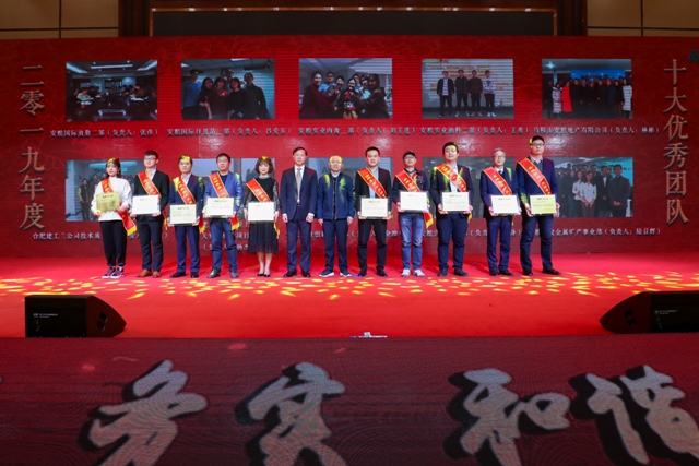 為總結(jié)經(jīng)驗(yàn)、鼓勵(lì)先進(jìn),集團(tuán)對(duì)2019年度涌現(xiàn)出的先進(jìn)集體和優(yōu)秀個(gè)人進(jìn)行了表彰,安糧集團(tuán)黨委副書記、紀(jì)委書記孫毅宣讀了《關(guān)于表彰2019年度先進(jìn)集體和個(gè)人的決定》。集團(tuán)領(lǐng)導(dǎo)為合肥建工、安糧國(guó)際、安糧實(shí)業(yè)三家“先進(jìn)單位”以及“十大優(yōu)秀團(tuán)隊(duì)”、“十大優(yōu)秀經(jīng)理”、“十大優(yōu)秀員工”進(jìn)行頒獎(jiǎng)。合肥建工陳龍、安糧控股陸召輝、安糧國(guó)際張偉分別作為獲獎(jiǎng)代表上臺(tái)發(fā)言。