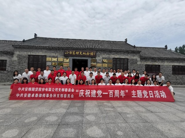 賀百年華誕,恰風(fēng)華正茂。在中國(guó)共產(chǎn)黨百年誕辰之際, 6月20日,安糧期貨黨支部與安徽卓泰律師事務(wù)所黨支部共赴中共壽縣小甸集特支紀(jì)念館開(kāi)展“慶祝建黨一百周年”主題黨日活動(dòng),探尋紅色足跡,接受革命傳統(tǒng)教育。