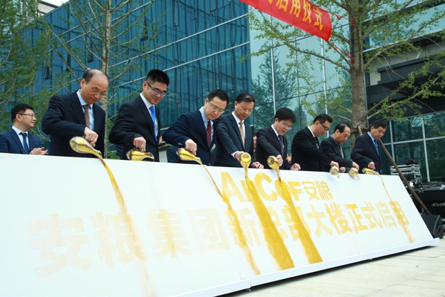 升旗儀式上,鮮艷的五星紅旗在莊嚴的國歌聲中緩緩升起,參加活動的全體人員向國旗行注目禮。啟用儀式上,曹訓(xùn)立董事長、方宗友總裁等集團領(lǐng)導(dǎo)在大家的熱烈掌聲和見證下,共同舉起金瓶將鎏金沙傾倒在啟用展板上,展板顯示出“安糧集團新總部大樓正式啟用”的字樣,活動進入高潮。隨后,全體人員在安糧中心總部大樓前合影留念,隨著快門定格時間的聲音響起,安糧集團新總部大樓升旗及啟用儀式圓滿禮成。