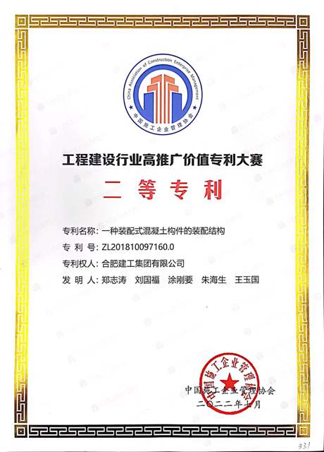 合肥建工榮獲“第二屆工程建設(shè)行業(yè)高推廣價(jià)值專利大賽”二等獎(jiǎng)