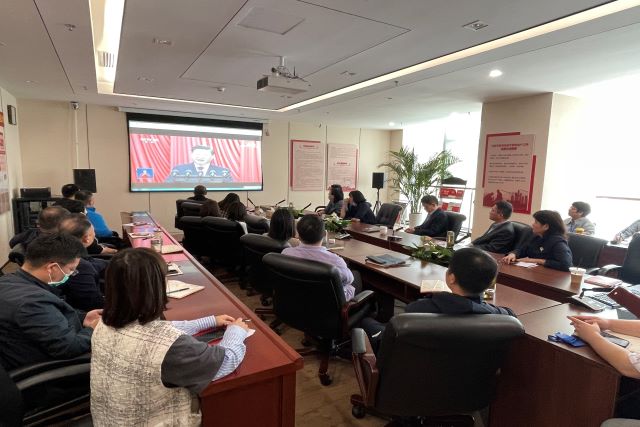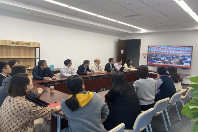 當(dāng)天上午,在安糧中心3208會(huì)議室內(nèi),安糧集團(tuán)黨委書記曹訓(xùn)立等黨委委員,團(tuán)委委員,集團(tuán)、控股支部黨員,部門負(fù)責(zé)人以及子公司黨員領(lǐng)導(dǎo)干部、統(tǒng)戰(zhàn)人員代表集中收看了開幕直播盛況,同志們聚精會(huì)神地聽、專心致志地記,仿佛置身于大會(huì)現(xiàn)場(chǎng)。