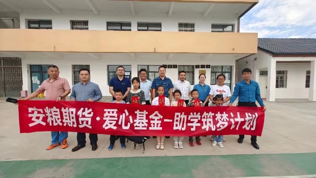 此外,安糧期貨牢記國(guó)企責(zé)任,不斷擦亮金融國(guó)企政治底色,充分發(fā)揮自身專業(yè)和資源優(yōu)勢(shì),在履行國(guó)企責(zé)任擔(dān)當(dāng)、傳遞期貨業(yè)正能量等方面開(kāi)展了卓有成效的工作。近年來(lái)共為安徽、河南等省份的對(duì)口幫扶村投入資金近百萬(wàn)元,用于當(dāng)?shù)氐漠a(chǎn)業(yè)脫貧和基礎(chǔ)設(shè)施提升等項(xiàng)目,幫助33名貧困戶順利實(shí)現(xiàn)脫貧,實(shí)現(xiàn)村集體和貧困戶增收近百萬(wàn)元。公司共錄取9名來(lái)自脫貧地區(qū)的高校畢業(yè)生,選派一名有鄉(xiāng)村振興工作經(jīng)驗(yàn)的員工駐扎在對(duì)口幫扶村開(kāi)展具體工作。黨支部還通過(guò)關(guān)愛(ài)鄉(xiāng)村兒童教育工作來(lái)踐行鄉(xiāng)村振興責(zé)任,通過(guò)由支部發(fā)起、公司員工自發(fā)捐款成立的“安糧期貨愛(ài)心基金”,積極開(kāi)展鄉(xiāng)村學(xué)?!爸鷮W(xué)筑夢(mèng)計(jì)劃”,對(duì)品學(xué)兼優(yōu)但家庭條件較為困難的同學(xué)持續(xù)進(jìn)行愛(ài)心捐助。
