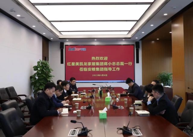 4月6日,紅星美凱龍家居集團(tuán)股份有限公司黨委書記、總裁蔣小忠一行到安糧集團(tuán)進(jìn)行工作交流,安糧集團(tuán)總裁方宗友等熱情接待蔣小忠一行并舉行工作座談。