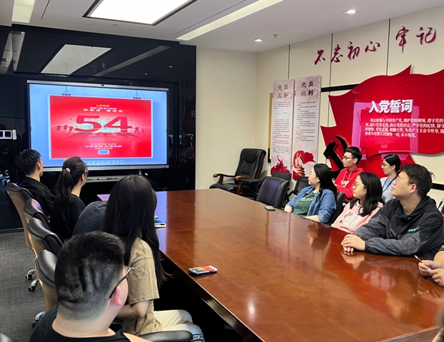 團(tuán)員們首先集體觀看了五四青年節(jié)創(chuàng)意短片《不被大風(fēng)吹倒》以及建團(tuán)百年短片《奮斗者正青春》。