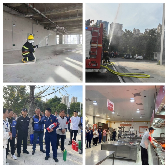 下午3時,消防應(yīng)急演練總指揮下達(dá)演練開始指令。工作人員在預(yù)定地點放置煙霧彈,觸發(fā)火災(zāi)報警,模擬火情發(fā)生場景。安糧中心辦公樓火警警報鳴響,全體職工迅速進入緊急疏散狀態(tài),各樓層消防和應(yīng)急救援隊員迅速反應(yīng),有序引導(dǎo)職工從安全出口撤離到避難層。同時,消防隊員全副武裝,封控火場、撲滅火災(zāi)。在火警解除后,救援大隊隊員開展滅火器使用教學(xué)、油鍋起火的預(yù)防和撲救等內(nèi)容,參與演習(xí)的物業(yè)、餐飲安全員們分別用不同的方式進行滅火實操,切身感受了正解與錯誤滅火的后果。