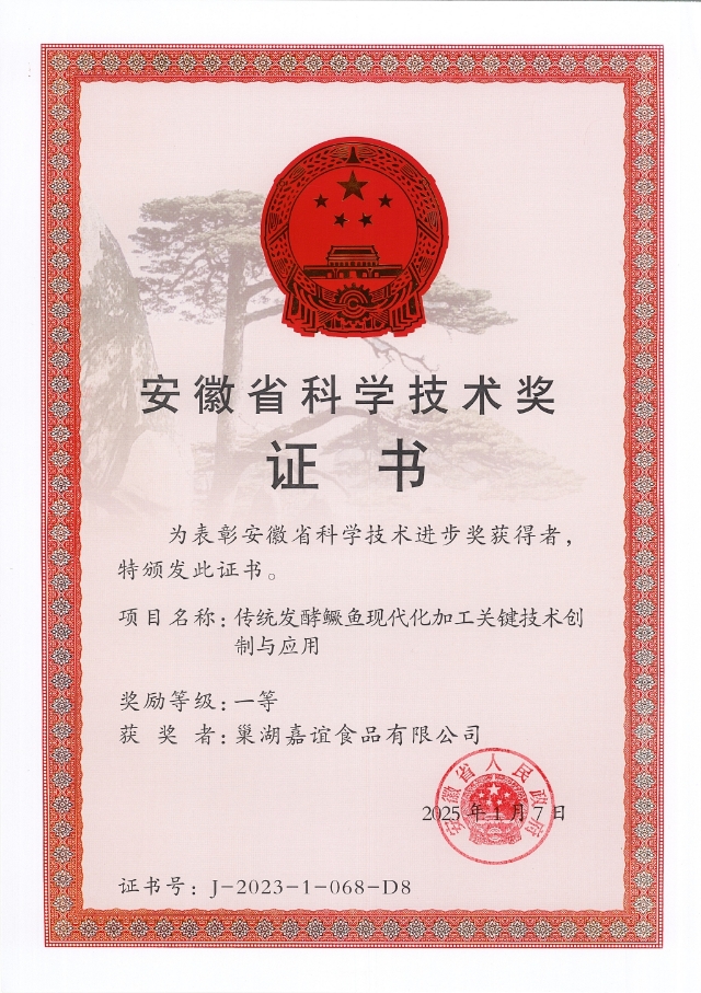 近日,安徽省科學(xué)技術(shù)獎(jiǎng)評(píng)選結(jié)果正式公布,安糧旗下巢湖嘉誼食品有限公司憑借“傳統(tǒng)發(fā)酵鱖魚現(xiàn)代化加工關(guān)鍵技術(shù)創(chuàng)制與應(yīng)用”項(xiàng)目,榮獲安徽省科學(xué)技術(shù)獎(jiǎng)一等獎(jiǎng)。這一重大科技成果的取得,充分彰顯了安糧堅(jiān)持科技創(chuàng)新驅(qū)動(dòng)發(fā)展、深化產(chǎn)學(xué)研合作的戰(zhàn)略成效。